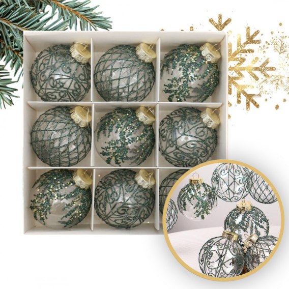 Komplet bombek 9 szt. opakowaniu 8cm, bombki na choinkę BSN62