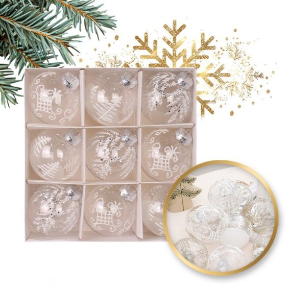 Komplet bombek 9 szt. opakowaniu białe 8cm, bombki na choinkę BSN42