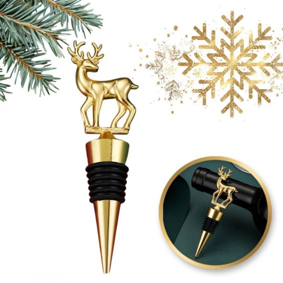 Korek, zatyczka do wina ZŁOTY świąteczny Renifer BOŻE NARODZENIE AB04