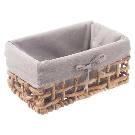 <li><strong>RĘCZNIE ROBIONY</strong> - Koszyk do przechowywania o wymiarach 26,5 x 17 x 12,5 cm. Wykonany ręcznie z zaplecionego hiacyntu wodnego na metalowej konstrukcji. Kosz posiada materiałową wyściółkę w modnym, szarym kolorze.</li>