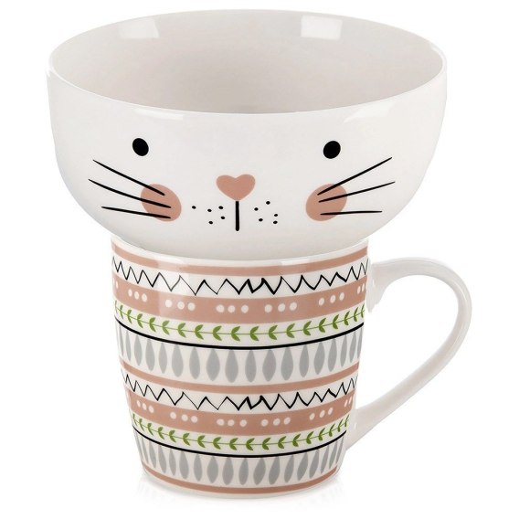 Kubek z Miseczką Porcelanowy 2 el. ORION Kot Zestaw Śniadaniowy