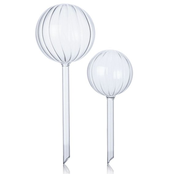 PRAKTYCZNE - Zestaw dwóch kul nawadniających do roślin. Przeznaczone do tego, by umieścić je w doniczce. Kule są w dwóch rozmiarach: mniejsza o średnicy 8 cm i długości 19 cm, większa o średnicy 10 cm i długości 27 cm.