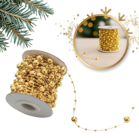 Łańcuch na choinkę 10m girlanda koraliki złote BOŻE NARODZENIE WOZ13