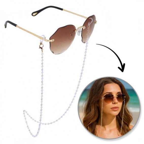 Łańcuszek do okularów białe koraliki LDK14