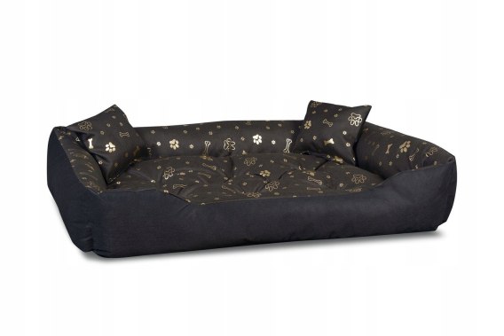 - Strona górna materaca jest nieprzemakalna, w kolorze ciemnobrązowym z złotym nadrukiem w łapki i kości.