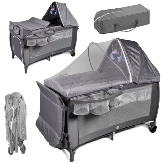 Łóżeczko dziecięce turystyczne składane kojec materac dla dzieci dwupoziomowe przewijak Kik Sp. z o. o. Sp. k.