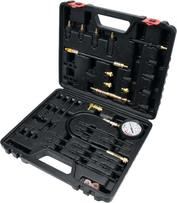 Uniwersalny zestaw do pomiaru ciśnienia kompresji zarówno w silnikach benzynowych, jak i diesla. Pomiaru można dokonać przez świece żarowe lub przez wtryskiwacz. Przeznaczony do samochodów osobowych, dostawczych, busów, ciągników i innych pojazdów rolniczych, a nawet łodzi motorowych.