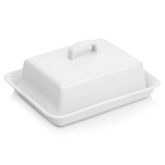 Maselniczka z Pokrywką Pojemnik na Masło Biały Ceramiczny VILDE 16x13 cm