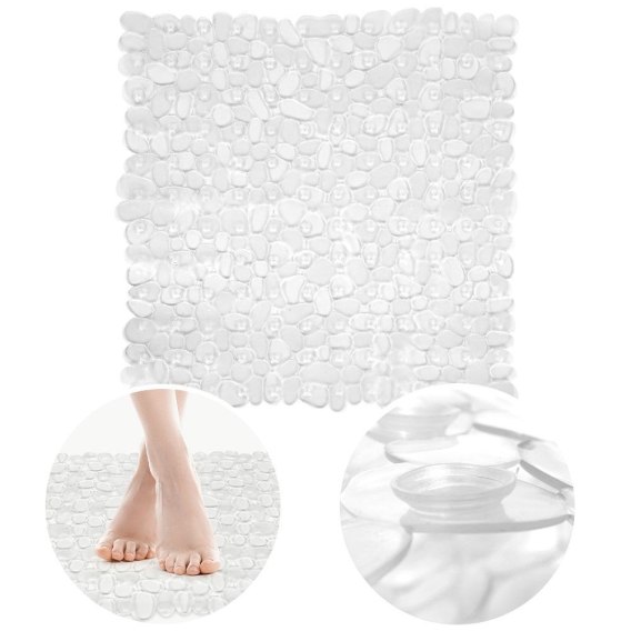 ANTYPOŚLIZGOWA - Łazienkowa mata antypoślizgowa o wymiarach 52 x 52 cm. Sprawdzi się pod prysznicem, w brodziku lub wannie. Mocno przylega za pomocą przyssawek.