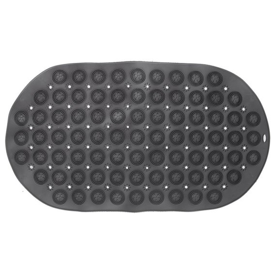 ANTYPOŚLIZGOWA - Łazienkowa mata antypoślizgowa z wypustkami masującymi. Mata ma owalny kształt o wymiarach 68 x 37 cm. Sprawdzi się pod prysznicem, w brodziku lub wannie. Mocno przylega za pomocą przyssawek.