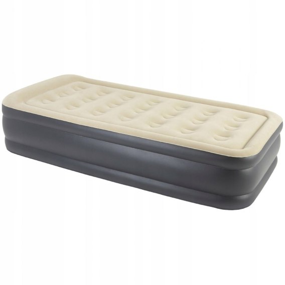 Od teraz wyjazd na biwak, kemping i wakacje będą czystą przyjemnością. Wodoodporność umożliwia korzystanie z materaca w różnych warunkach pogodowych. Welurowa powierzchnia jest miękka i przyjemna w dotyku. Grubość i konstrukcja produktu gwarantuje spokojny i komfortowy wypoczynek, niezależnie gdzie jesteś. Materac wyposażony jest w zintegrowaną pompkę elektryczną.