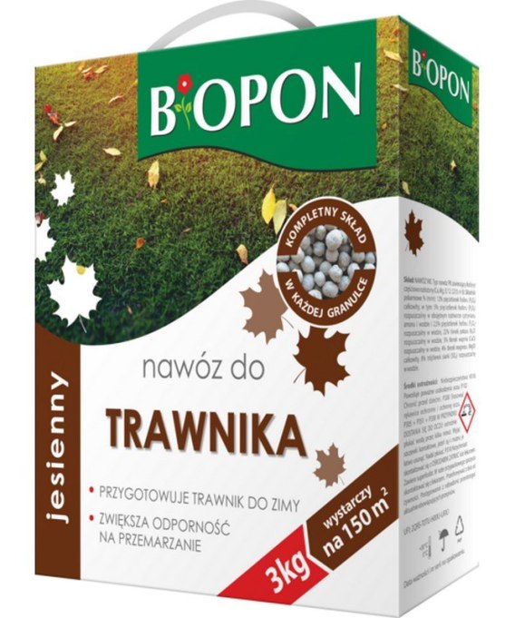 NAWÓZ JESIENNY - DO TRAWNIKA GRANULAT KARTON Z UCHWYTEM 3 KG BIOPON