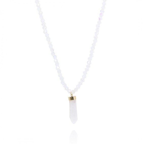 Modny naszyjnik ze stali szlachetnej platerowanej 14 - karatowym złotem z kryształem górskim Świetnie pasuje do eleganckich, jak również do codziennych stylizacji.
