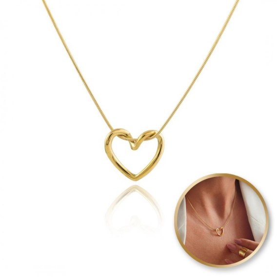 Naszyjnik SERCE stal szlachetna pozłacana 14k złotem, żyłka NST2152