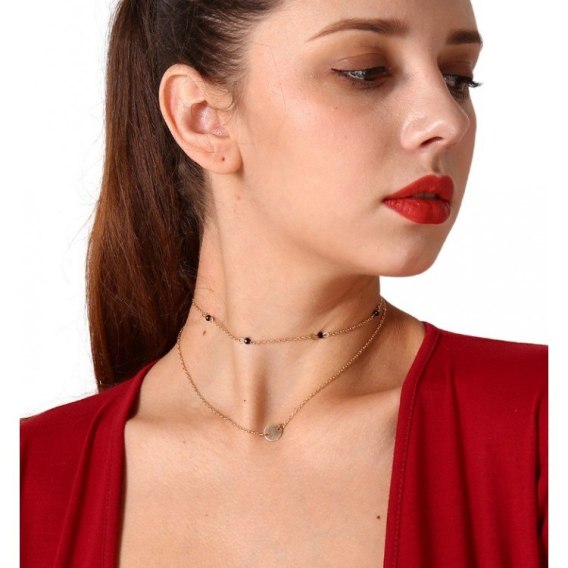Naszyjnik delikatny multi celebrytka czarne koraliki złoty N658Z