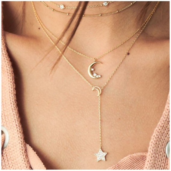 Naszyjnik multi księzyc gwiazdka złoty N656N