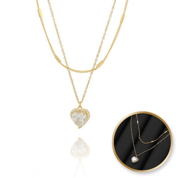 Naszyjnik serce stal szlachetna pozłacana 14k złotem, z cyrkoniami NST1629