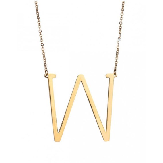 Naszyjnik stal chirurgiczna literka W platerowana złotem NST995W