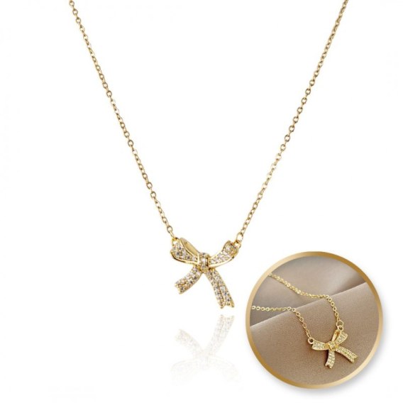 Naszyjnik stal szlachetna pozłacana 14k złotem KOKARDA cyrkonie NST2166