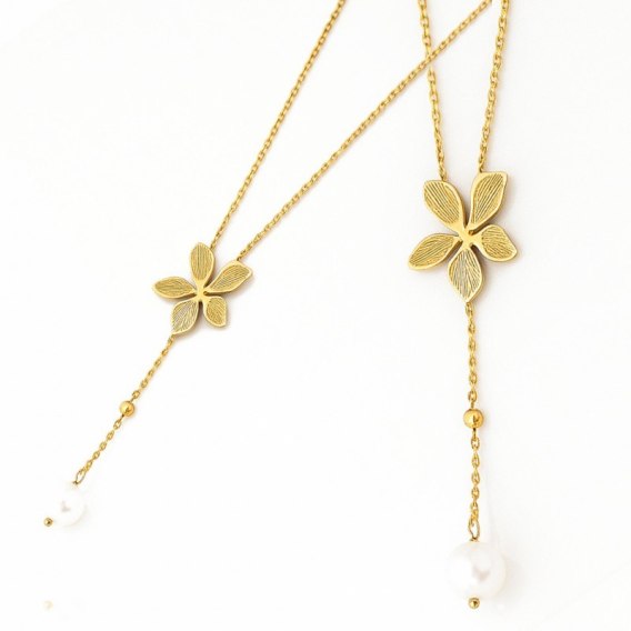 Naszyjnik stal szlachetna pozłacana 14k złotem, KWIAT, perła NST2206