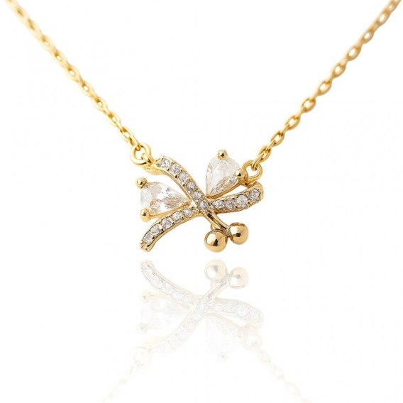 Naszyjnik stal szlachetna pozłacana 14k złotem, kokardka cyrkonie NST2221