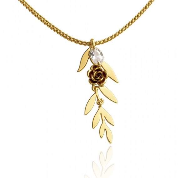 Naszyjnik stal szlachetna pozłacana 14k złotem, listki, róża cyrkonia NST2211