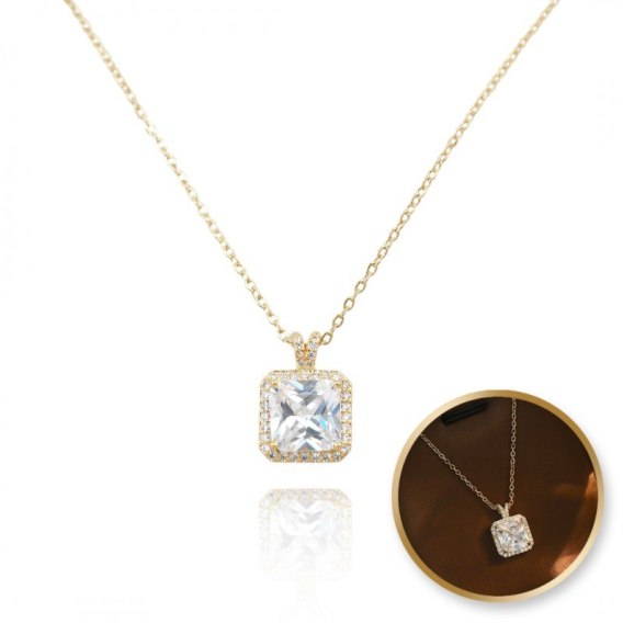 Naszyjnik stal szlachetna pozłacana 14k złotem, z cyrkoniami NST2111