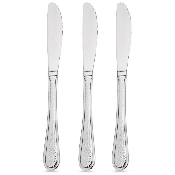<li><strong>KLASYCZNE</strong> - Zestaw trzech noży obiadowych w srebrnym kolorze. Noże mają długość 23 cm. Noże są z serii Siren.</li>