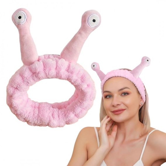 Opaska kosmetyczna do włosów ślimak, różowa pluszowa 20x5cm OPK22R