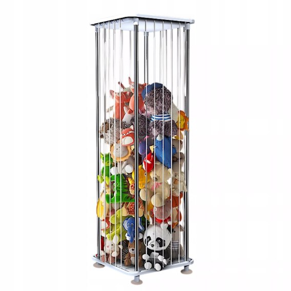 Praktyczne rozwiązanie, które pomaga w utrzymaniu porządku w dziecięcym pokoju. Dzięki pionowej konstrukcji zajmuje mało miejsca, a jednocześnie mieści wiele zabawek. Ścianki z gumowych miękkich linek sprawiają, że pluszaki są zawsze widoczne i łatwo dostępne dla dziecka.