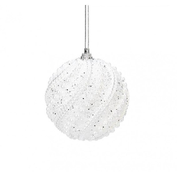 Ozdoba świąteczna bombka perełki biała 1szt KSN148