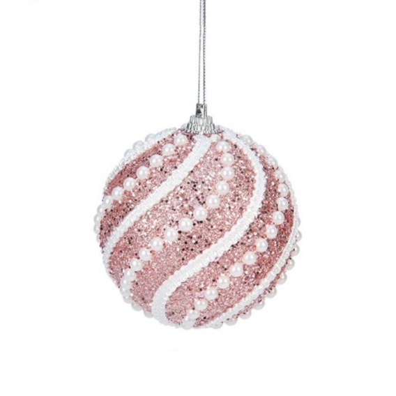 Ozdoba świąteczna bombka perełki różowa 1szt KSN150