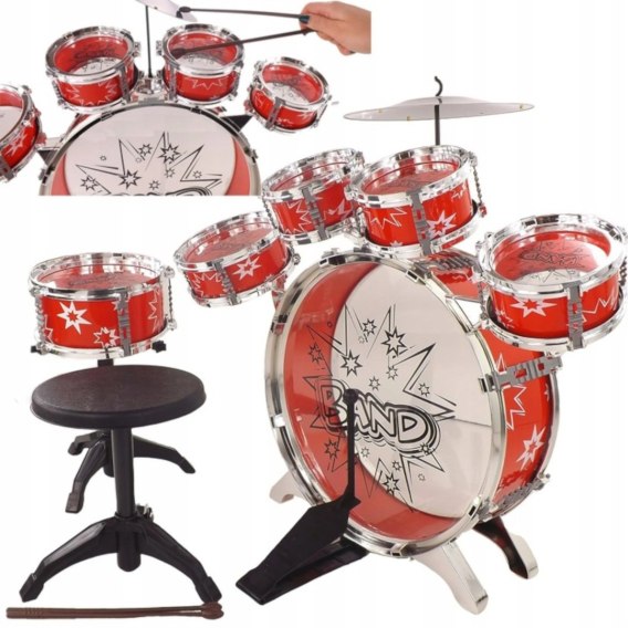 PERKUSJA DLA DZIECI 6 BĘBNÓW TALERZ KRZESŁO 28807C
