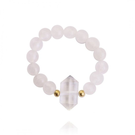 Pierścionek na gumce stal chirurgiczna pozłacana kryształ górski PST854B