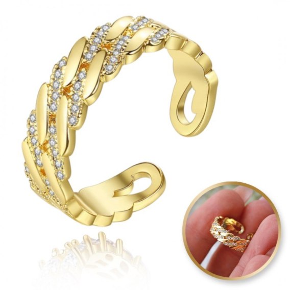 Pierścionek stal chirurgiczna platerowana złotem regulowany, z cyrkoniami PST935