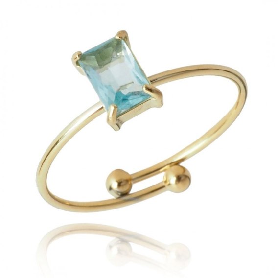 Pierścionek stal szlachetna platerowana 14k złotem z niebieską cyrkonią PST918