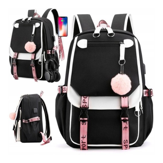 Plecak sportowy szkolny uniwersalny z brelokiem i USB PL156CZ