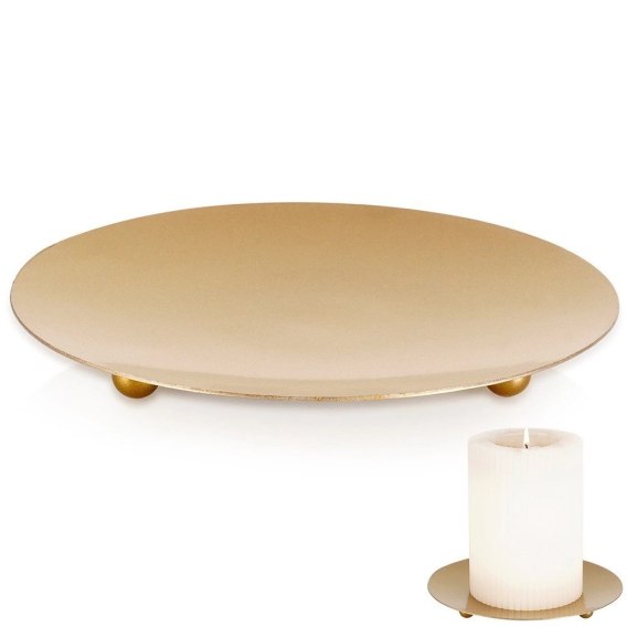 Efektowna podstawka pod świece. Jej minimalistyczny, modny design nadaje wnętrzu nowoczesny charakter, podkreślając elegancję umieszczonych na niej ozdób. Dzięki solidnemu wykonaniu, podstawka jest trwała i odporna na uszkodzenia, co sprawia, że będzie cieszyć swoim wyglądem przez długi czas. Idealnie wpisuje się w najnowsze trendy wnętrzarskie, stanowiąc wyjątkowy akcent dekoracyjny.