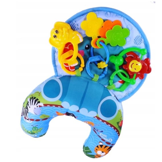 Uniwersalna poduszka sensoryczna 3w1 dla niemowląt łączy w sobie trzy funkcje: wałek do nauki podnoszenia główki i wzmacniania mięśni brzuszka, który zapewnia idealną pozycję do zabawy i ćwiczeń; miękką poduszkę pod głowę, niezastąpioną podczas karmienia i chwili relaksu; oraz praktyczną poduszkę podróżną pod kark, która gwarantuje wygodne wsparcie dla starszych dzieci podczas jazdy samochodem lub spaceru w wózku.