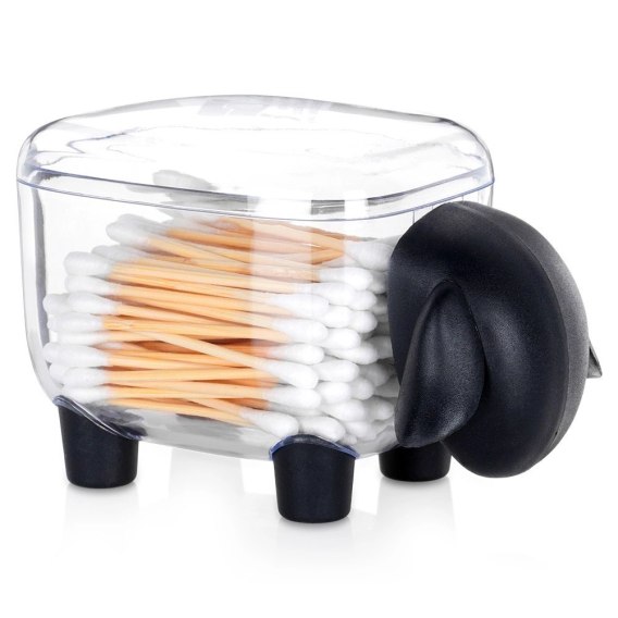 Pojemnik na patyczki, płatki kosmetyczne i inne akcesoria to praktyczny dodatek do łazienki. Przezroczysty kolor pozwoli zobaczyć, ile patyczków zostało. Pokrywka chroni patyczki przed kurzem a kształt owieczki będzie ciekawym dekorem. Jest kompaktowy, ale mieści sporo patyczków, a jego uzupełnianie jest szybkie i wygodne.