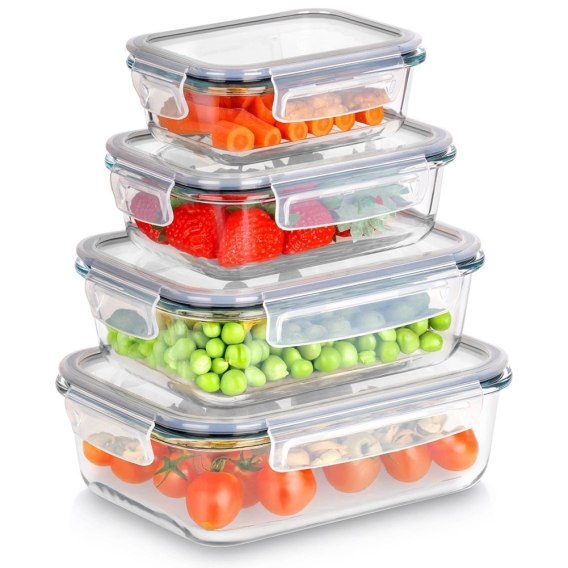 Pojemniki na żywność szklane z pokrywką i uszczelką 4 szt.