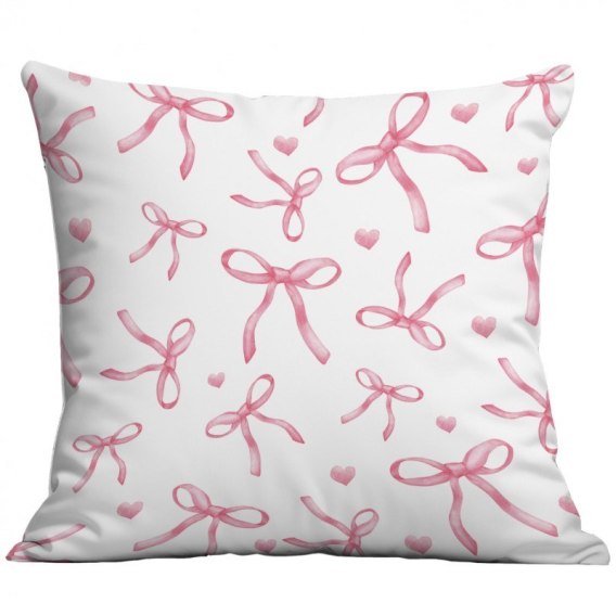 Poszewka na poduszkę 45 x 45 cm biała, KOKARDKI różowe POD228