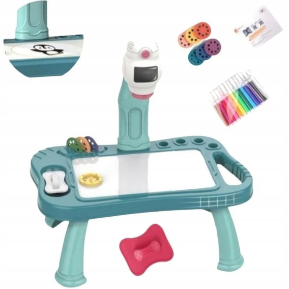Projektor do nauki rysowania i malowania w kształcie robota to świetny sposób na naukę poprzez zabawę dla Twojego dziecka. Już od najmłodszych lat pobudza wyobraźnie, ćwiczy spostrzegawczość oraz pamięć. Edukacyjna zabawka, która rozwinie w dziecku zdolności plastyczne, które zaowocują w dalszej nauce w przedszkolu, a później w szkole. Rzutnik w ładnych odcieniach koloru niebieskiego to idealny prezent dla każdego dziecka, które lubi rysować.