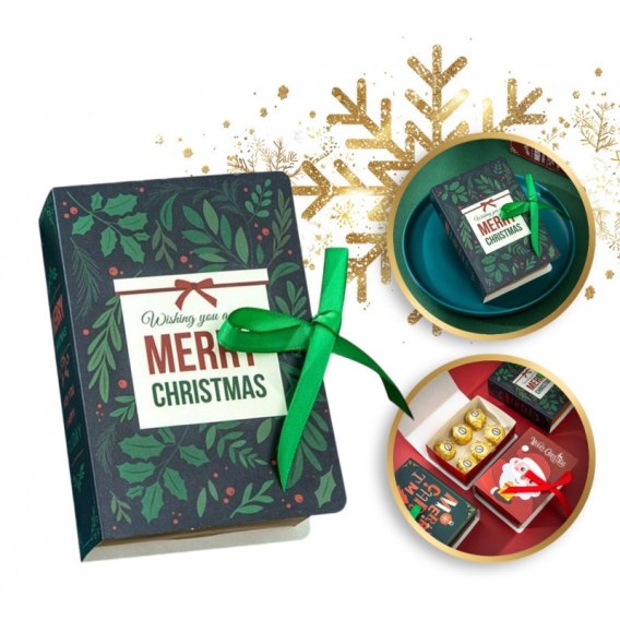 Pudełko ozdobne prezentowe z napisem MARRY CHRISTMAS.