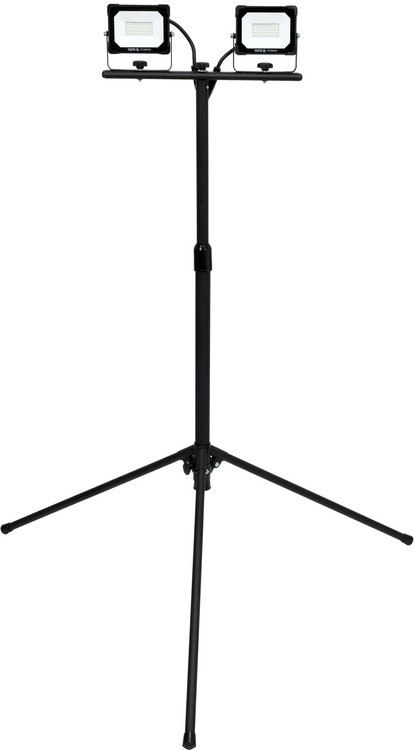 Dwa płaskie naświetlacze z wydajnymi diodami SMD LED umieszczone na stabilnym, regulowanym stojaku. Klasa szczelności IP65 pozwala na korzystanie z oświetlenia w warunkach zewnętrznych.