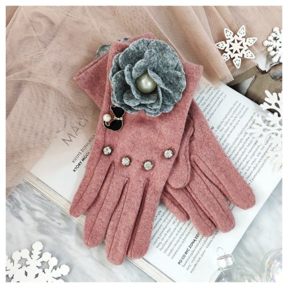 RĘKAWICZKI Z KOTKIEM I KWIATKIEM RÓŻOWE REK47R
