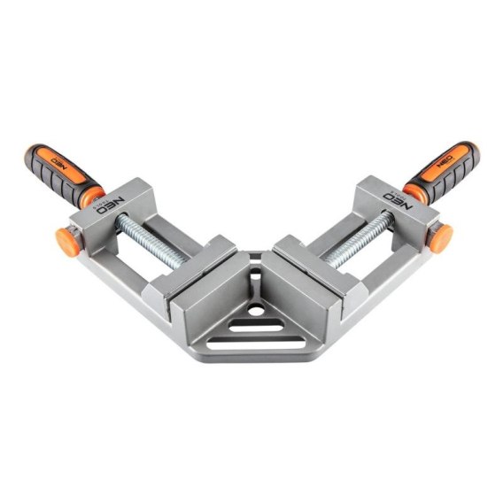 Ścisk narożnikowy podwójny 45-491 marki NEO to narzędzie stolarskie, zaprojektowane z myślą o łączeniu dwóch drewnianych części pod kątem 90 stopni (i pod warunkiem, że każda z nich nie jest szersza niż 65 mm). Imadło wykonane z wysokiej jakości materiałów, posiada szczękę z podwójnym uchwytem, która stabilizuje elementy i ułatwia pracę.
