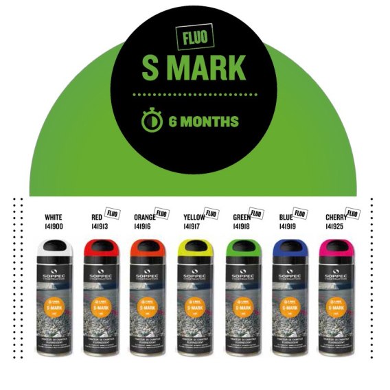 Doskonałe krycie na dużej powierzchni: 1 aerozol wystarcza, aby pomalować linię o długości 55 m i szerokości 2 cm za pomocą jednokołowego urządzenia do aplikacji Soppec.