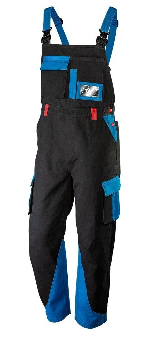 Elastyczne szelki z regulacją oraz guma w tylnej części pasa pozwalają na dopasowanie ogrodniczek do sylwetki, jednocześnie zapewniając komfort w pracy.
