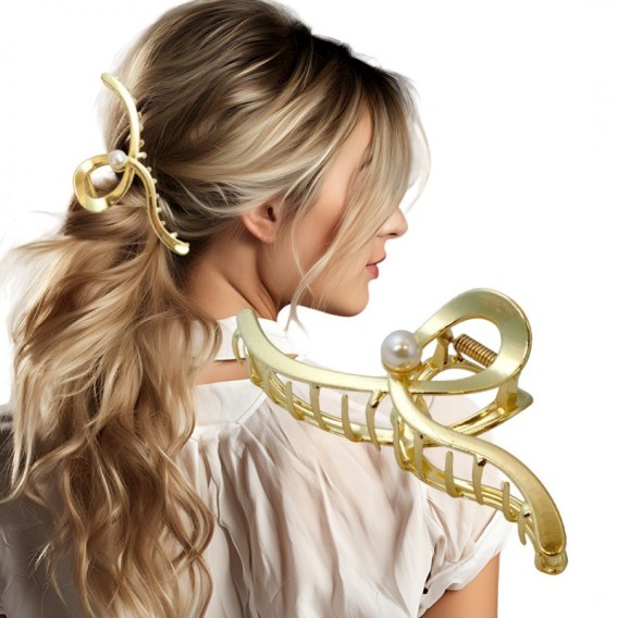 Spinka klamra do włosów XL metalowa złota z perłą 12,5 cm SP377